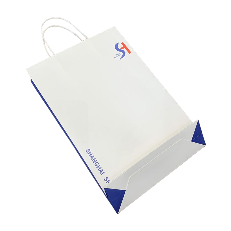 China Aangepaste logo wit papieren zakken merk boodschappentas promotionele papieren zak met handvat voor kleding Leveranciers En